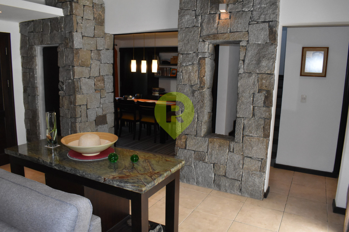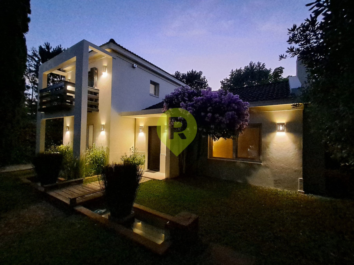 Zwei Etagen auf 600 m² Grundstück. Vollständig umzäunt. Intimität garantiert. Extra Pförtner-Eingang. Mit Kaskade und Brückchen liebevoll gestalteter Garten. Parterre lockt: Weitläufiges Wohn-Esszimmer mit Kamin. Große Fenster integrieren die Natur in Ihr Ambiente. Und führen zur Terrasse. Dort Pergola und Grill. Perfekt für Feste. Hauptschlafzimmer. Vollbad. Geräumige Küche mit Office. Wäscherei. Obergeschoss: Zwei helle Zimmer. Ein Balkon zum Garten. Armoires eingebaut. Zweites Bad. Punta del Este Immobilien strahlen Funktionalität aus. Weil jedes Detail durchdacht ist.