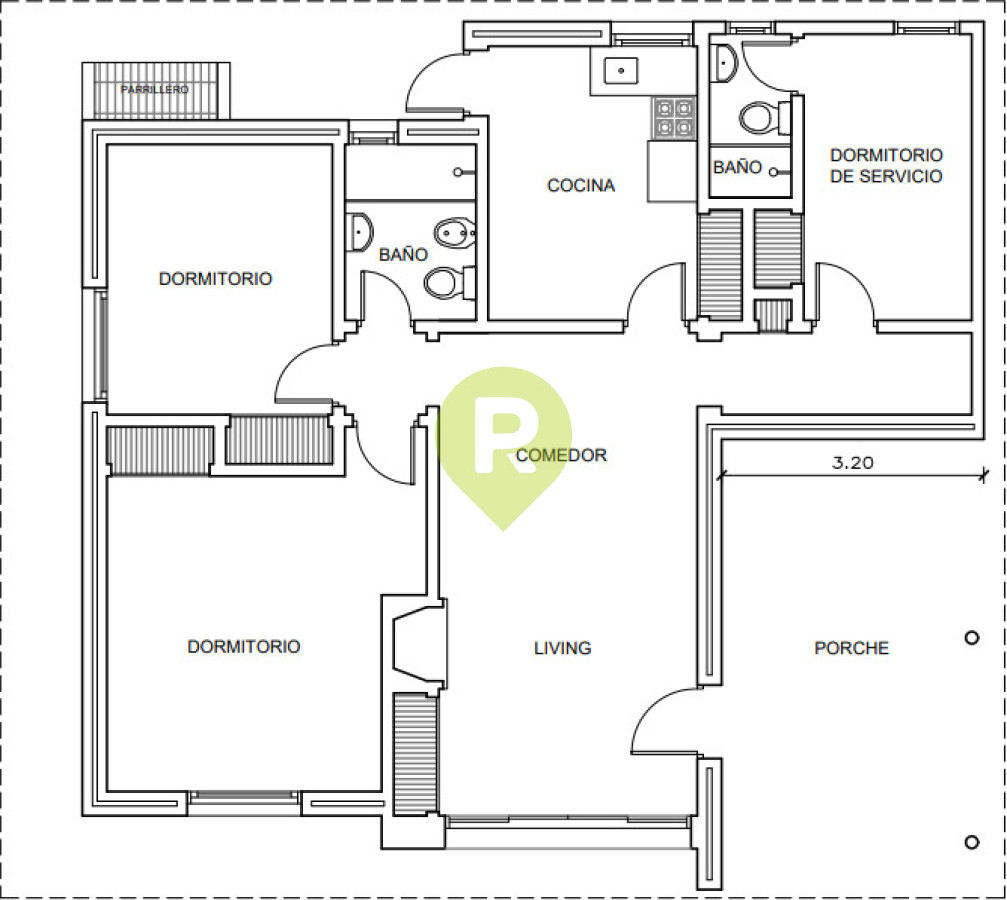 - Geschlossene Garage hinten, Parrillero